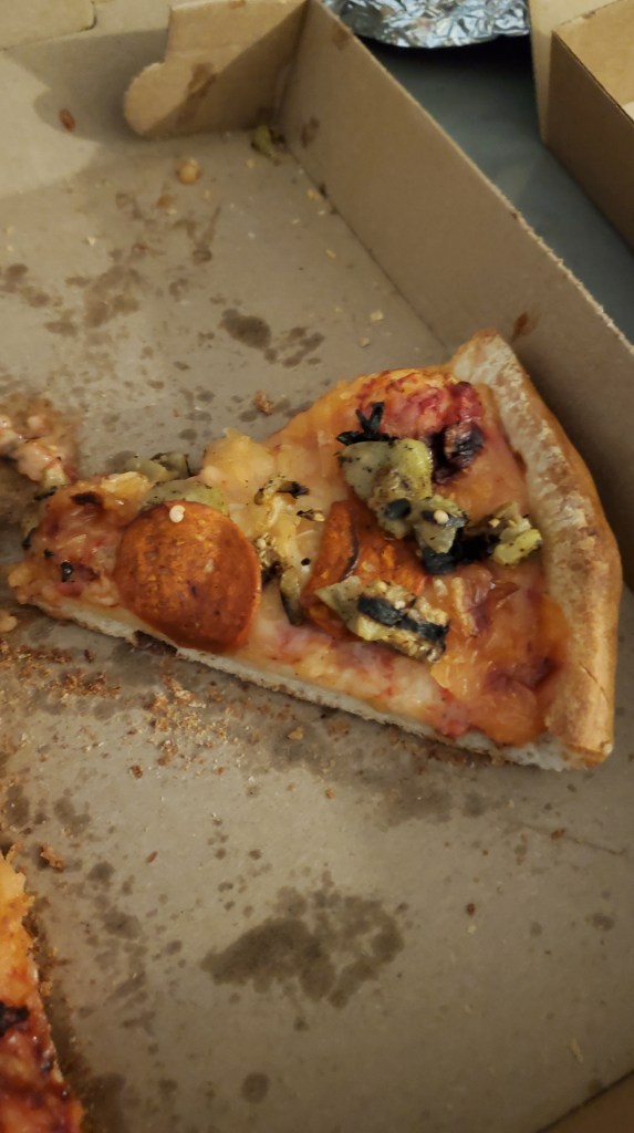 Um, yeah, they have vegan pepperoni. This will become a staple of my house. The sigil of our family. A vegan pepperoni pizza. Put it on a flag.