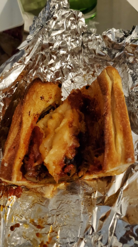 I know this photo of their vegan eggplant parmesan sandwich might not look fantastic, but it tastes amazing. I highly recommend it. Why is there eggplant so good? I don’t know. Do they marinate it? Is it how it’s prepared? I couldn’t tell you.