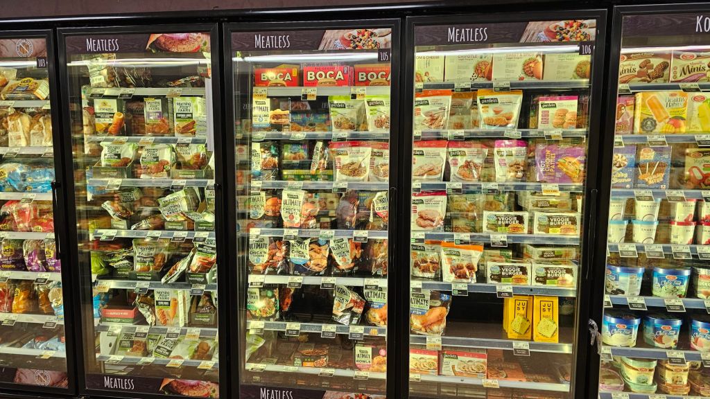 Here we are at the primary vegan frozen area, also near the frozen kosher and frozen veggie section. Here’s where you’ll find all the Gardien products and the other brands like morning harvest that makes some vegan products.