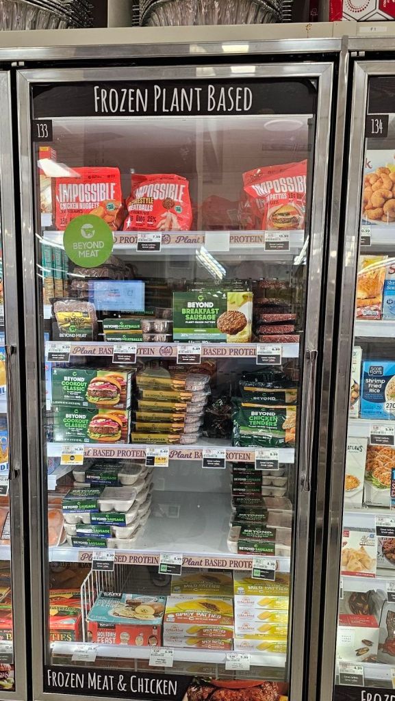 Here we are on the back wall of the store where you can find the beyond meat products. I found something here today I’ve never seen before…