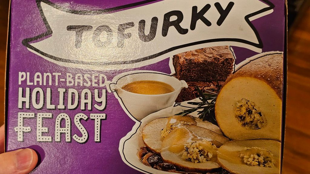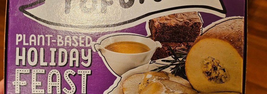 So… I forgot to take pictures of our Tofurky Plant-Based Holiday Feast. The rendering on the box is pretty accurate, so I guess that’ll have to do.