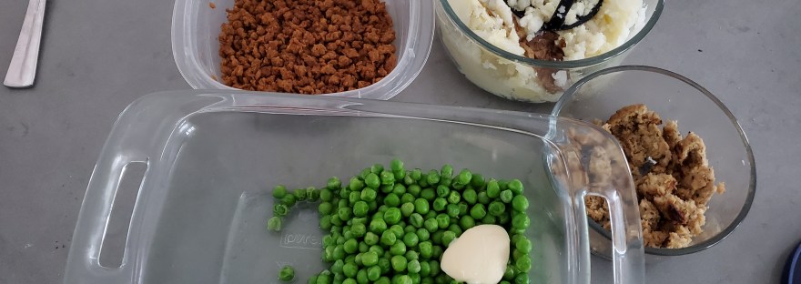 I'll do another take on this at some point, but real quick, here's how I make Vegan Shepard's Pie. As you can see from the photo below, this was me grabbing leftovers and making it work.